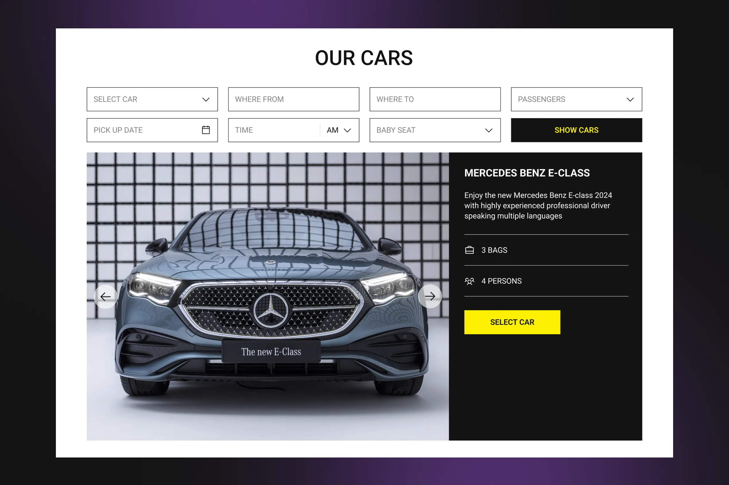 A separate form is designed for ordering a limousine or another vehicle for transfer.