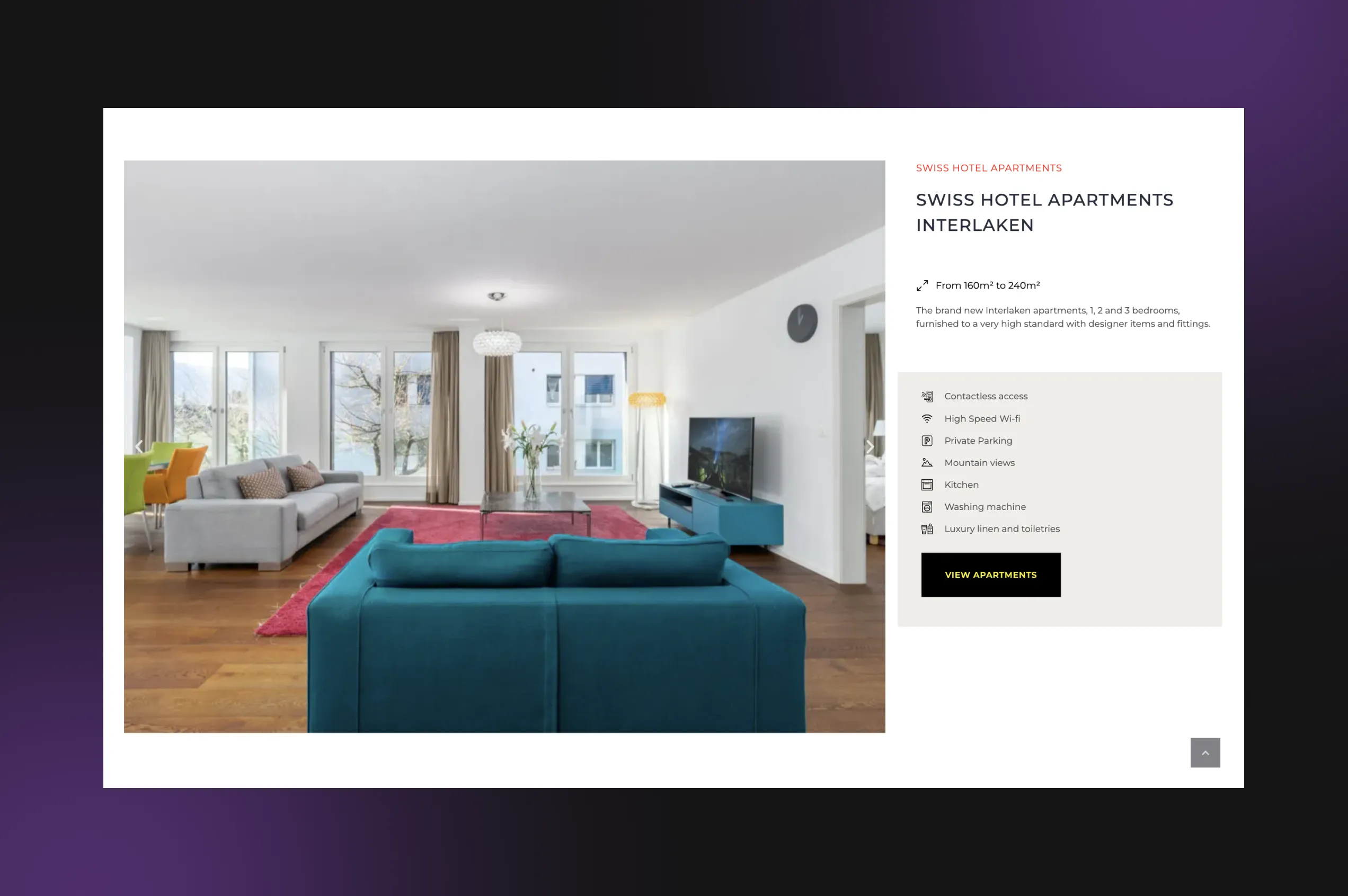 Swiss Hotel Apartments section readdresses to the Swiss Hotel site for hotel booking services.