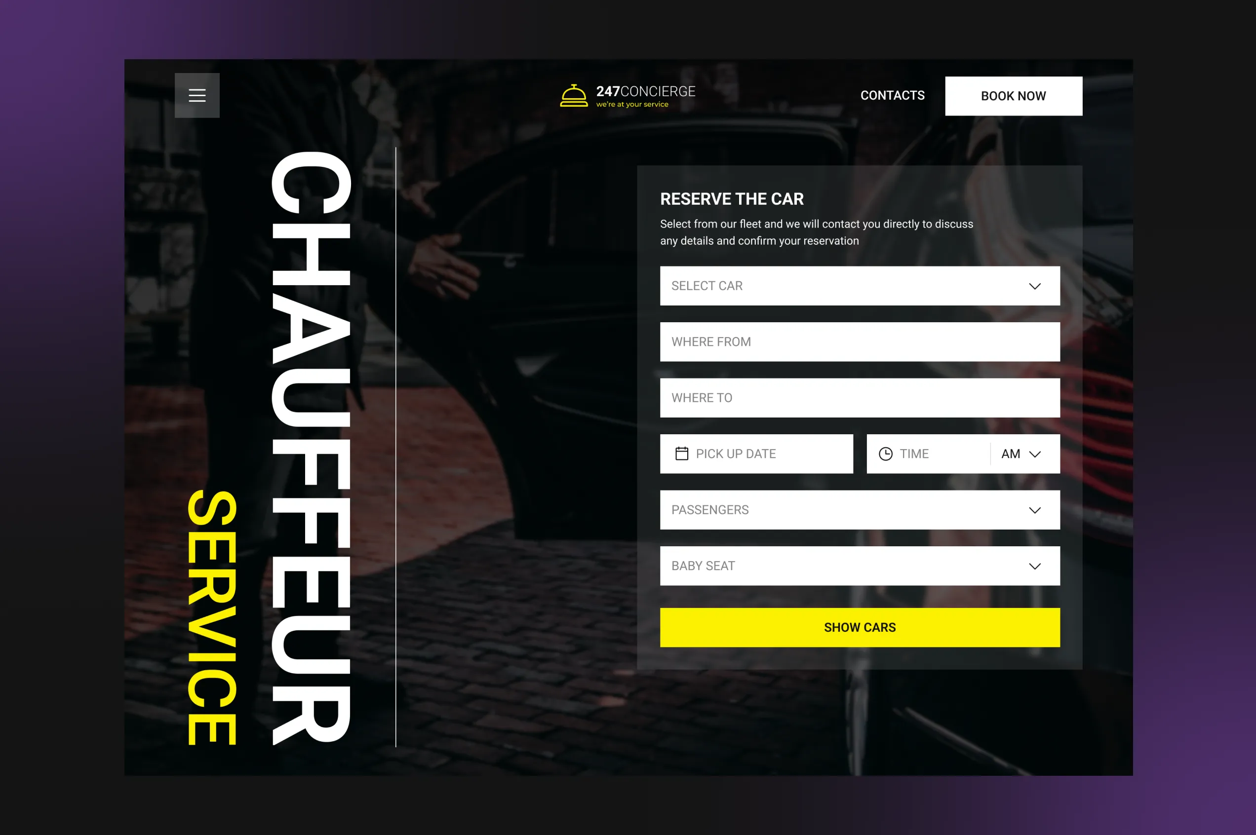 The project appeared as an addition to an existing hotel booking application, Swiss Hotel, created for booking hotel services. 247Concierge, as it may be concluded from its name, is aimed to provision of services creating comfort for tourists and people on a trip. The application allows to book limousine, housekeeping and concierge services through one app.