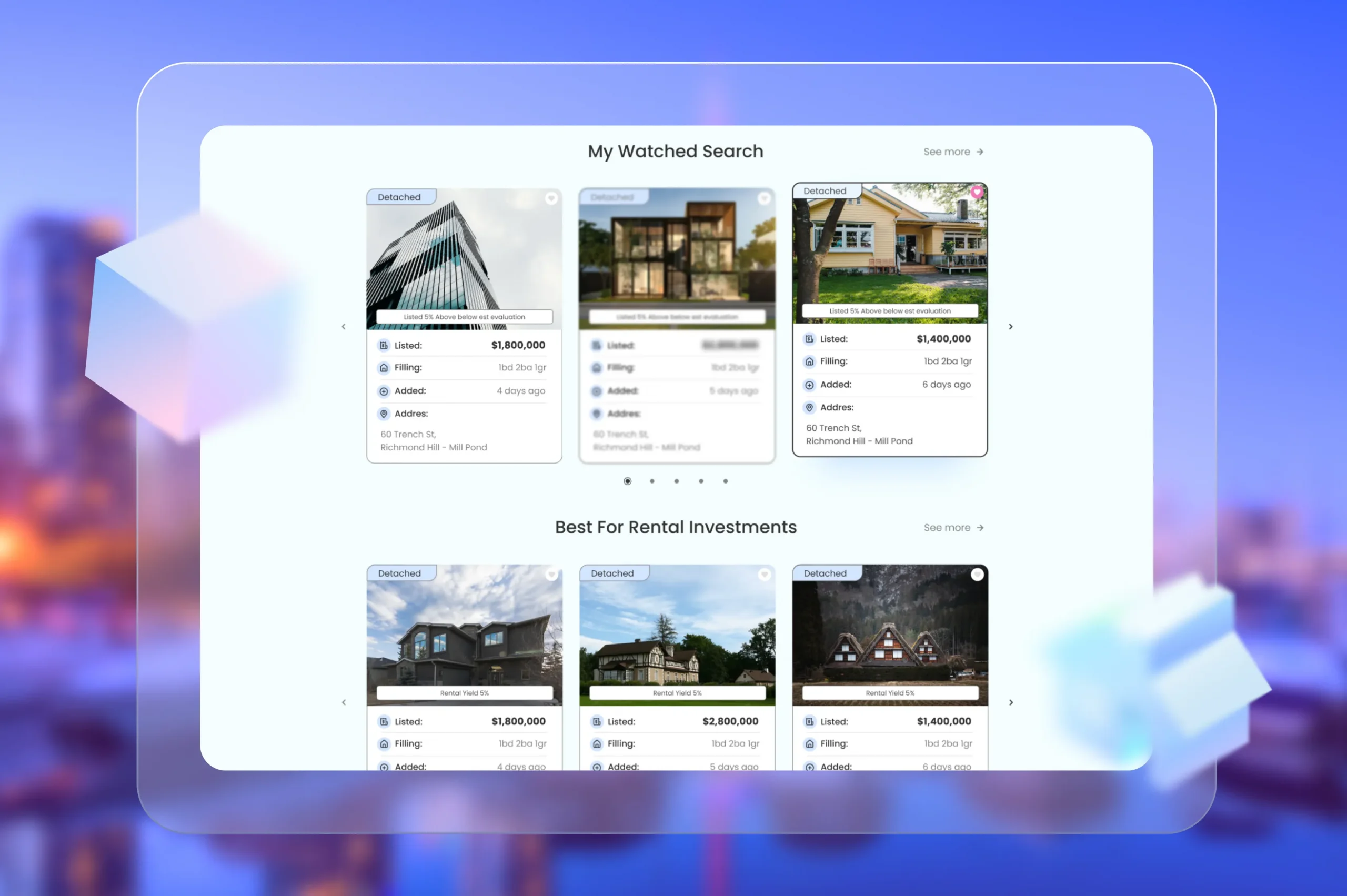 The clients wanted to create a comprehensive platform with as many offerings of real property objects as possible, all over Canada, in one place. Smart listing options with detailed sorting and evaluation functions were also necessary to be implemented; market data and analytics were also to be provided. Alongside with this, it was planned to apply AI-based functions for detailed inquiries and prompt search of property with desired features.