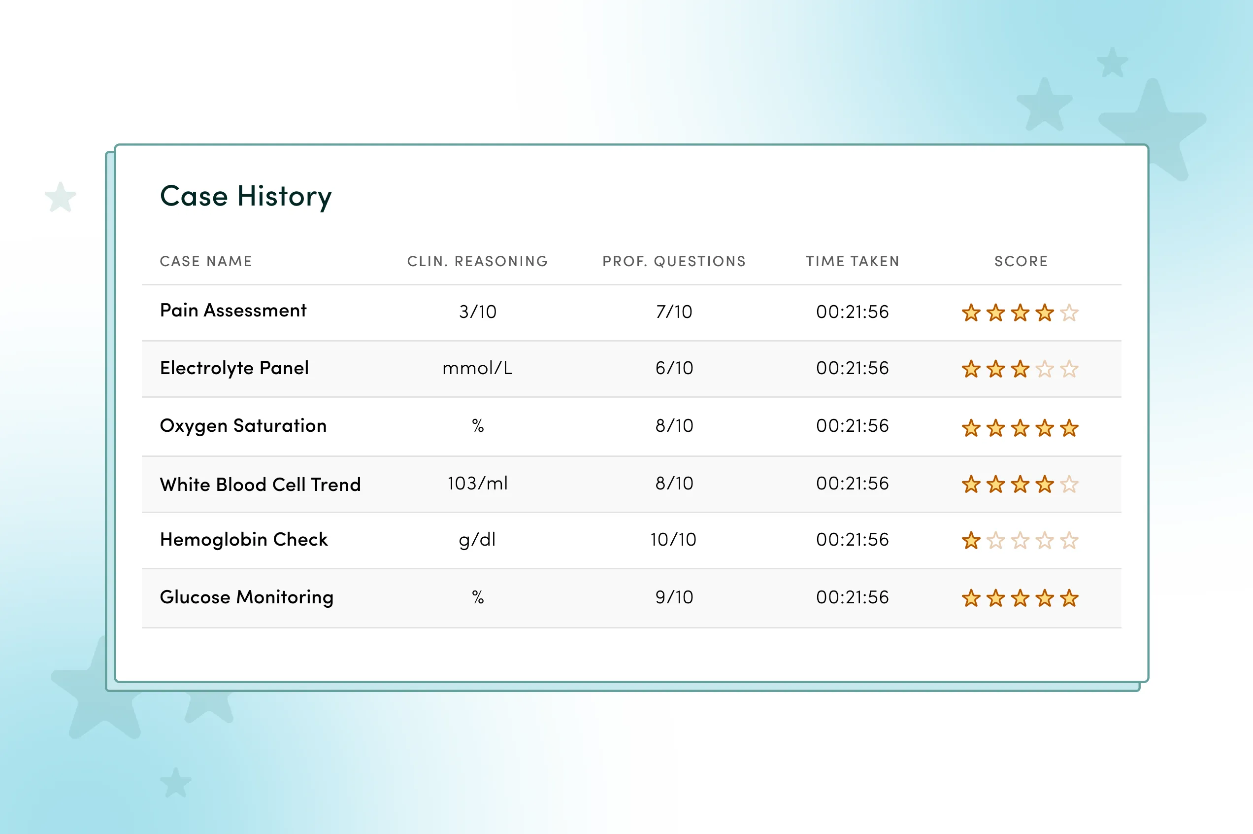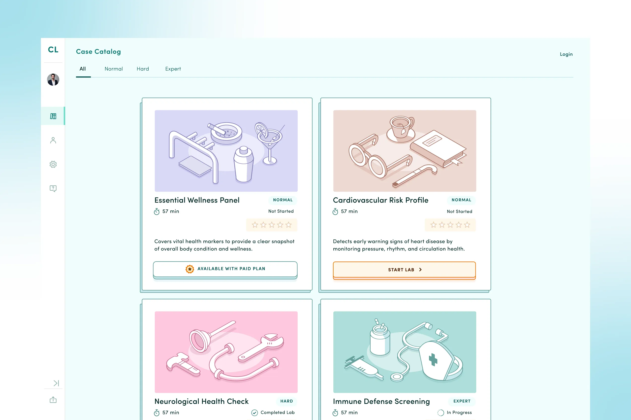 - Case Catalog: From this section, students can browse and select available cases from the list to start their practice.