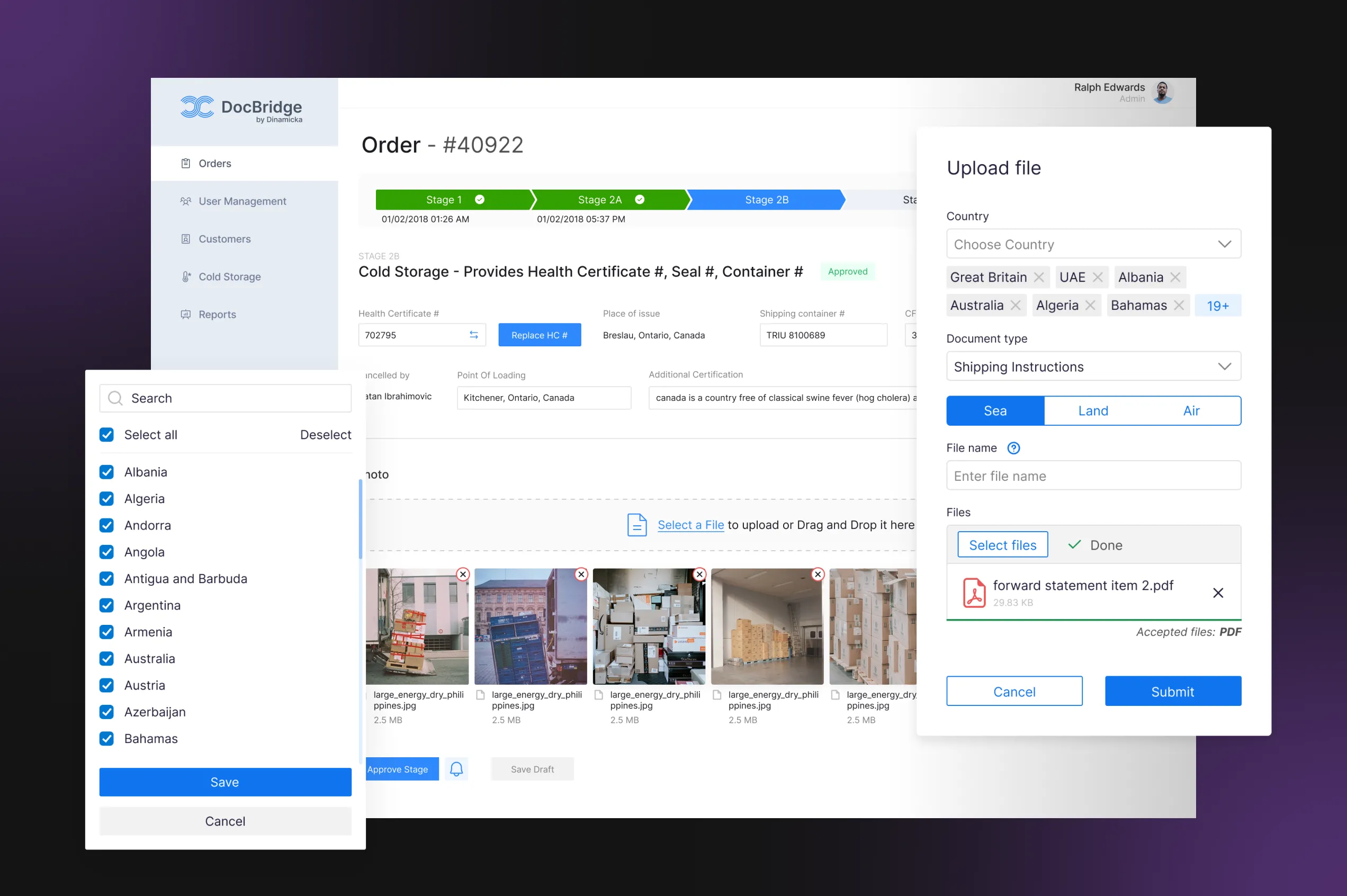 This system was created to enable users to manage their cargo documentation and track its progress on the way. This product allows to process automatic documentation creation according to specific country of delivery, check with inventory, choose a consignee from the list, create new document layouts in a flexible way, book shipments and track their progress, obtain notifications on process stages.