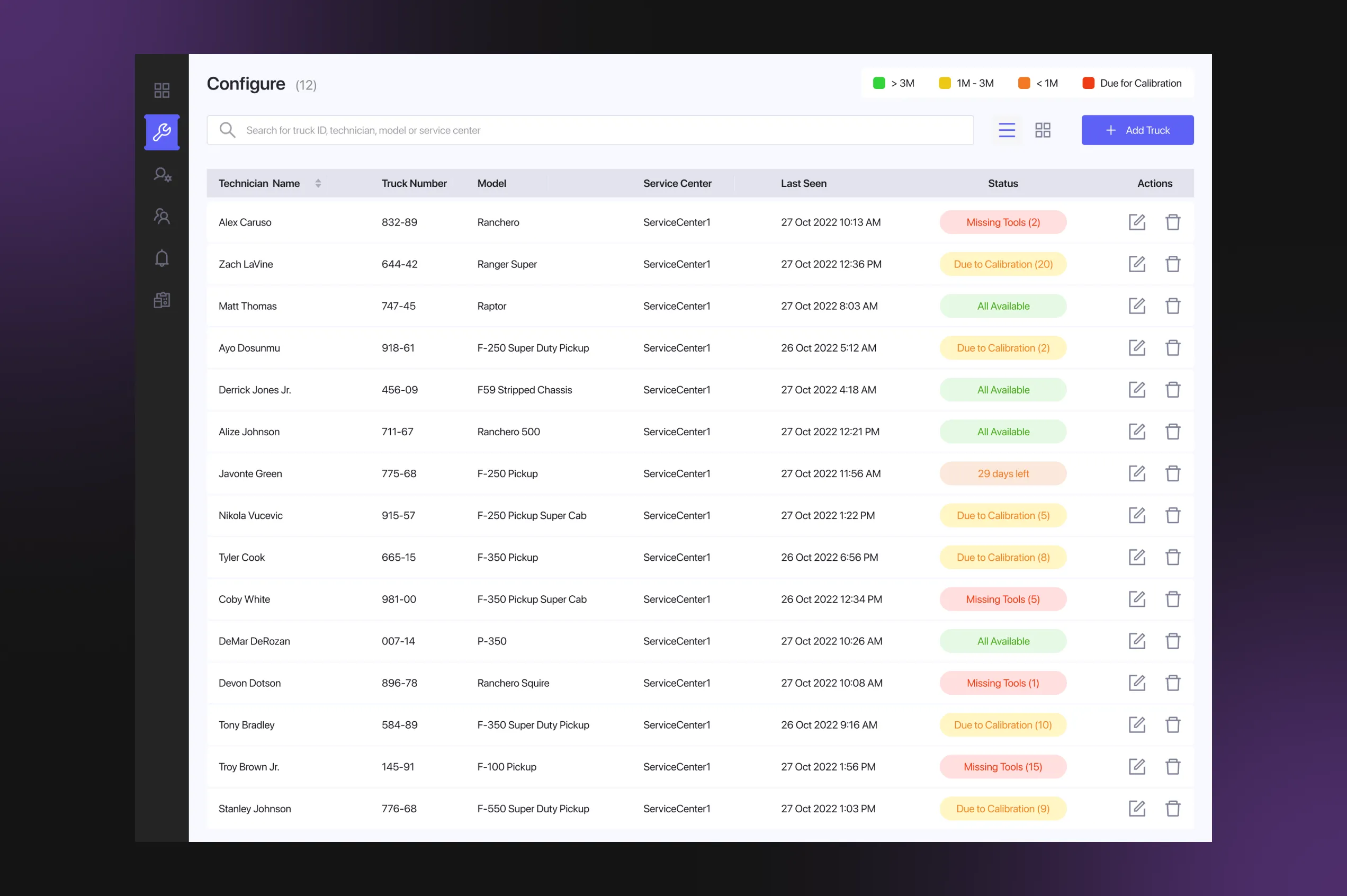 - One-click resource management for easy access to data about trucks, tools, and inventory – with smart filters and visual status tags.