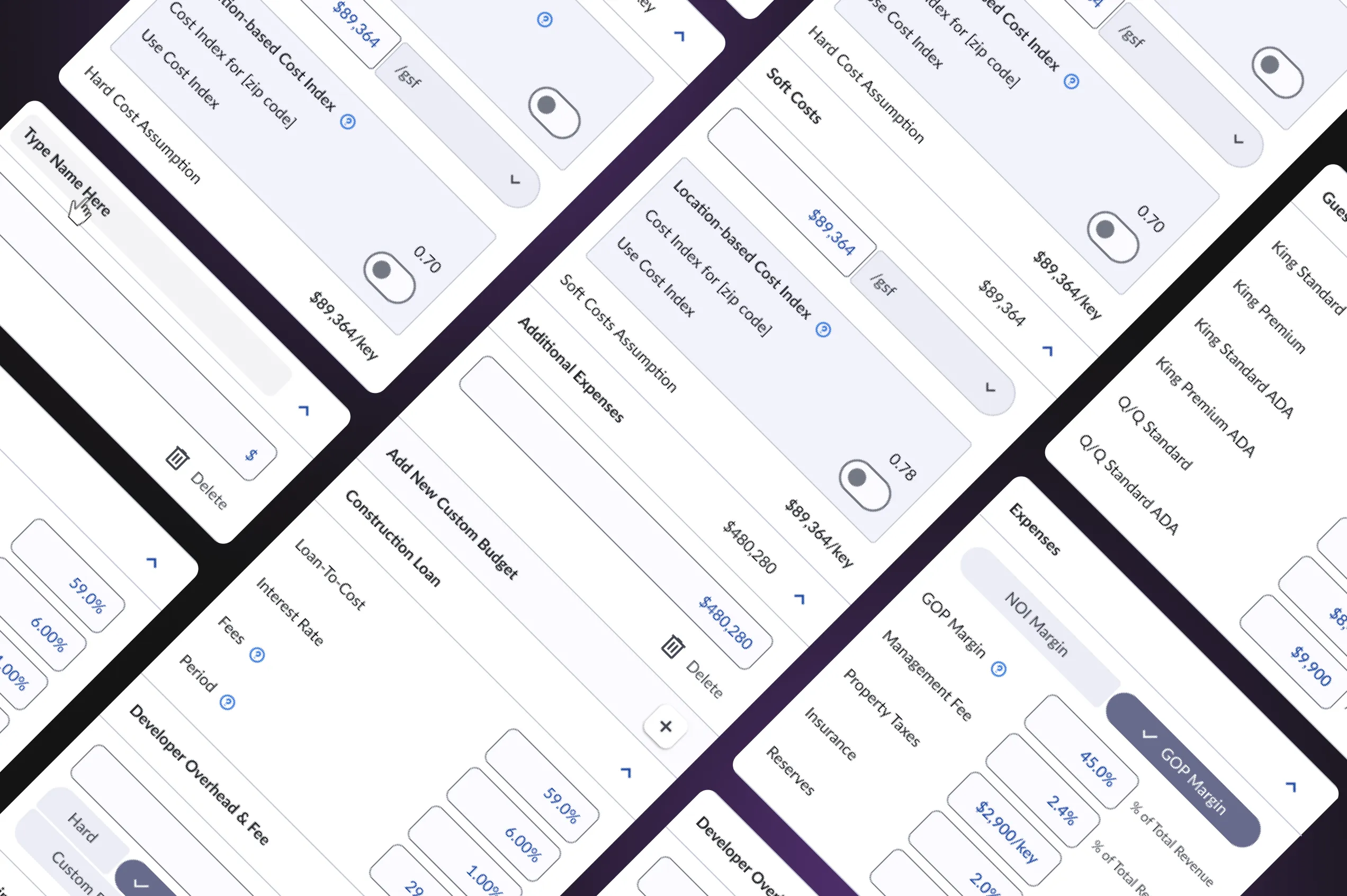 - Execute advanced financial calculations — built-in investment property analysis calculator provides model development costs, NOI, room revenues, operating expenses, taxes, and margins to validate project feasibility