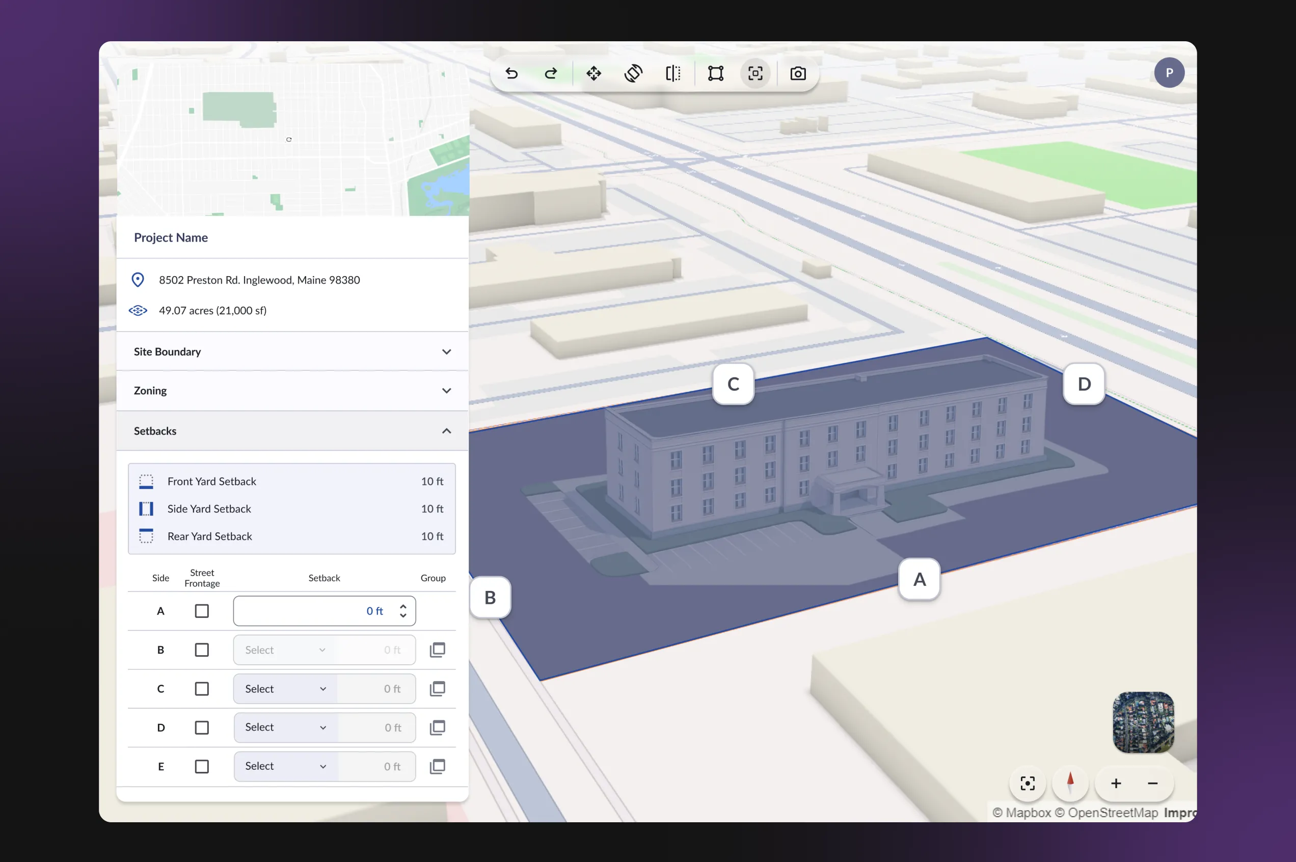 - 3D Viewer — spin, flip, and move the design within the selected land plot to consider different spatial options;