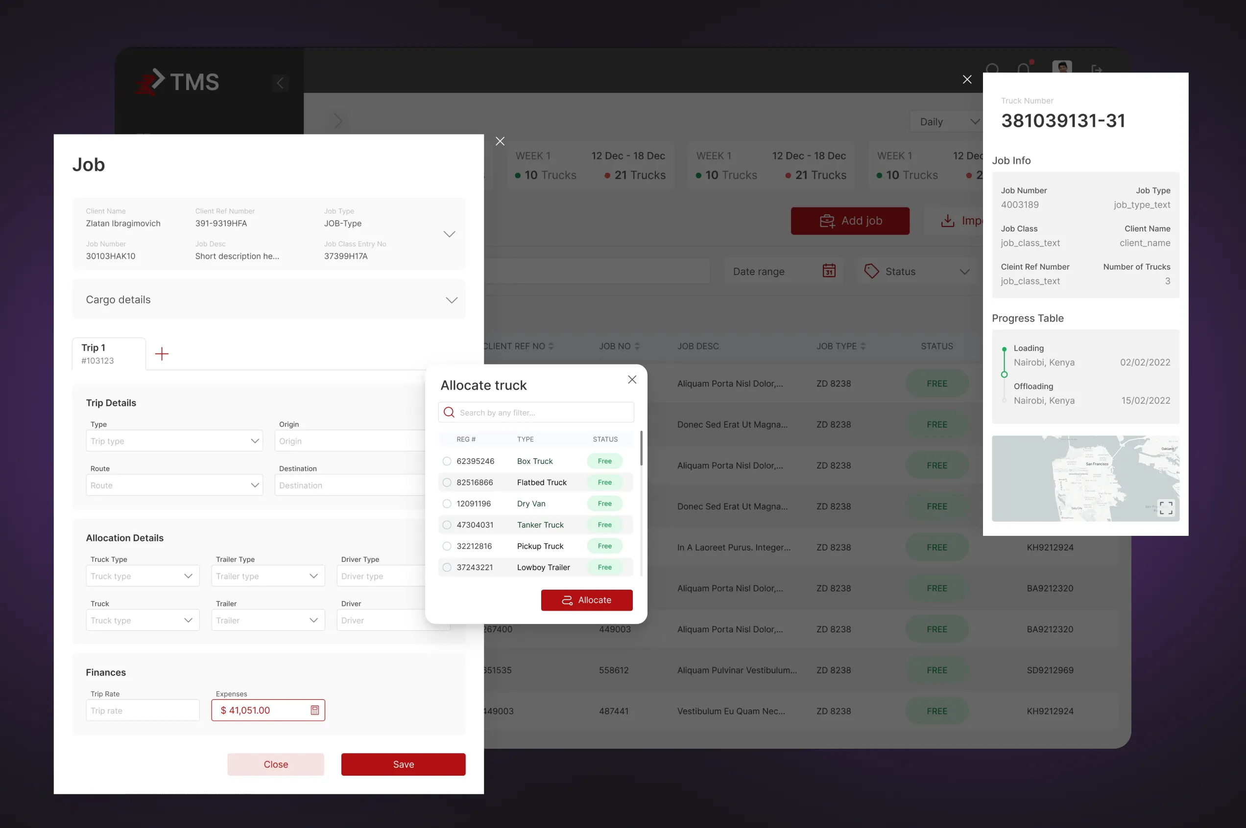 - Allocate jobs to drivers;